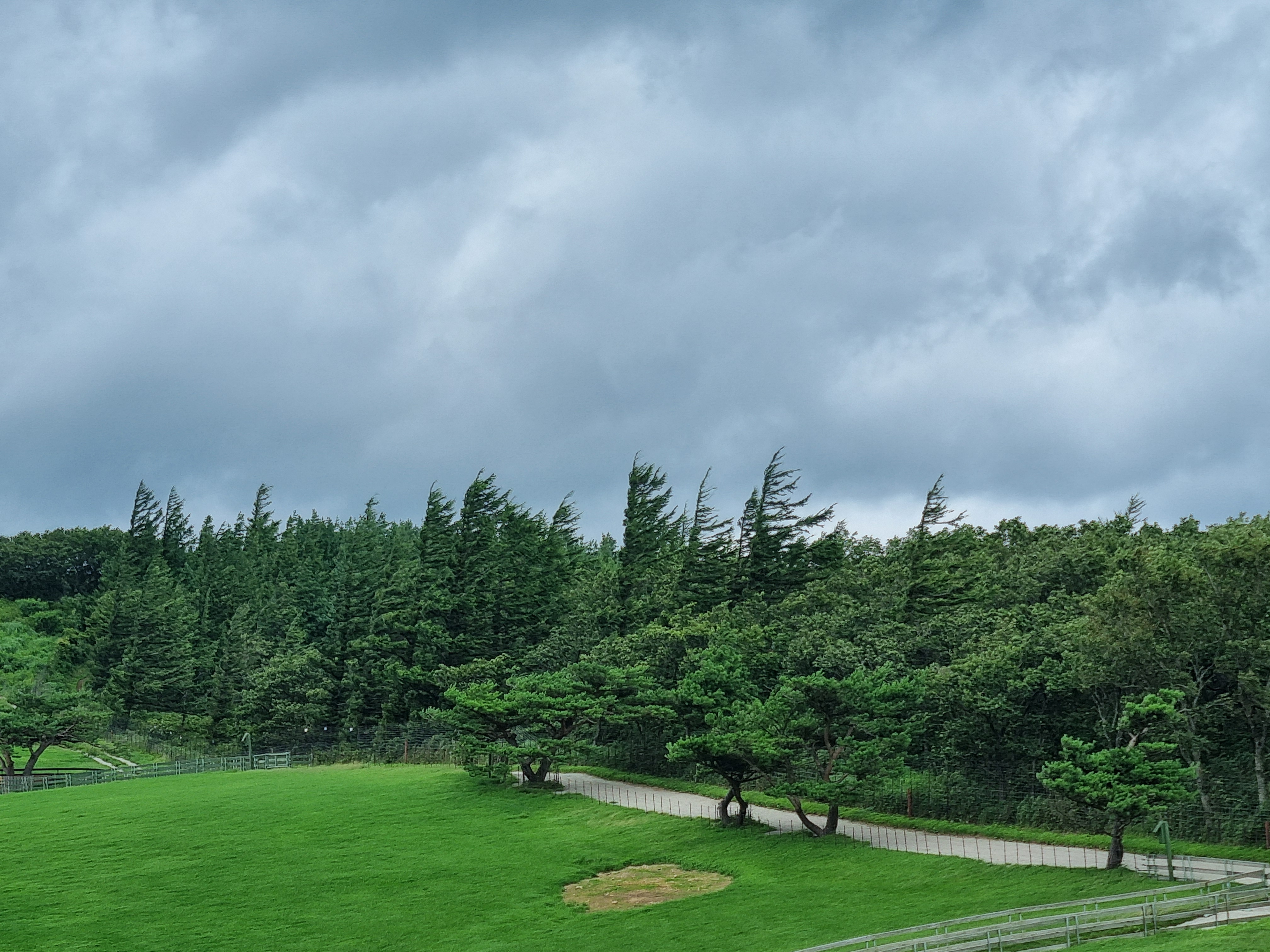 내비를 찍고 내리면 위 사진과 같은 푸른 초원이 보이나 생각하지만, 보이는 것은 작은 휴게소입니다. 제대로 찾아왔나... 싶은 마음은 내버려두고 일단 휴게소 뒷길로 걸어가봅니다.