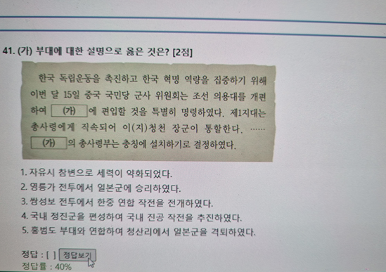 위 문제로 따지자면, (가)부대의 이름이나 년도를 외우지 않더라도
