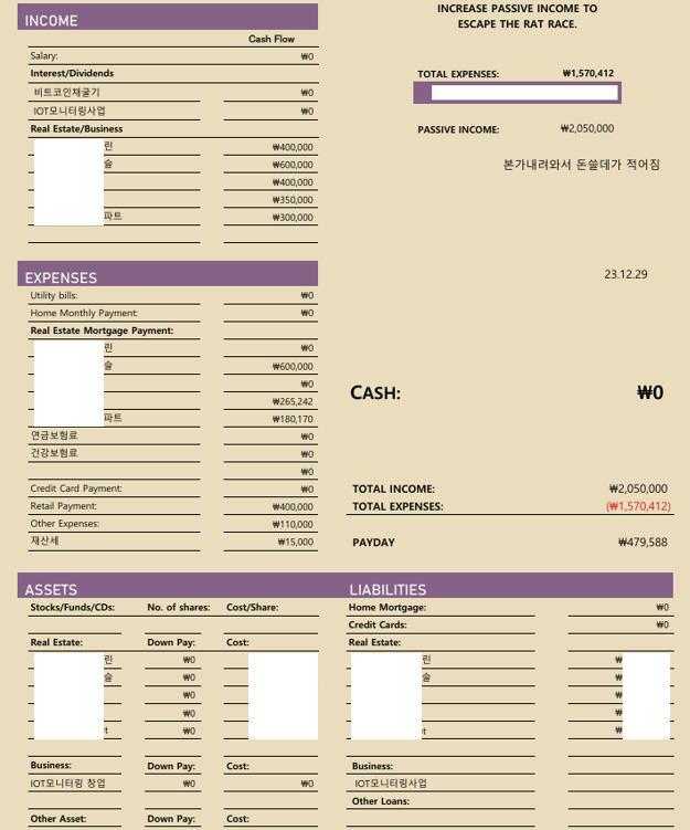 로버트 기요사키씨는 이걸 대차대조표니 뭐니 거창하게 부르던데 사실인지는 모르겠다.