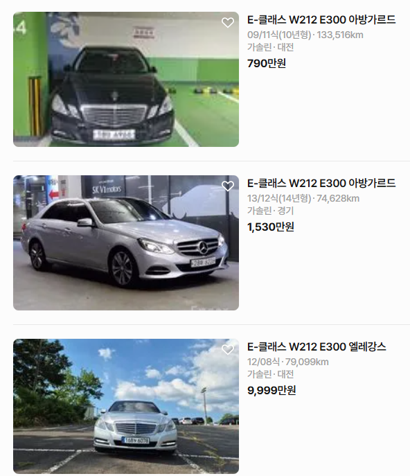 위에 큰 사진들은 대부분 딜러들이 올려놓은 매물들이고, 작게 올라온건 개인 매물이 더 많아보여서 더더욱 걱정된다.