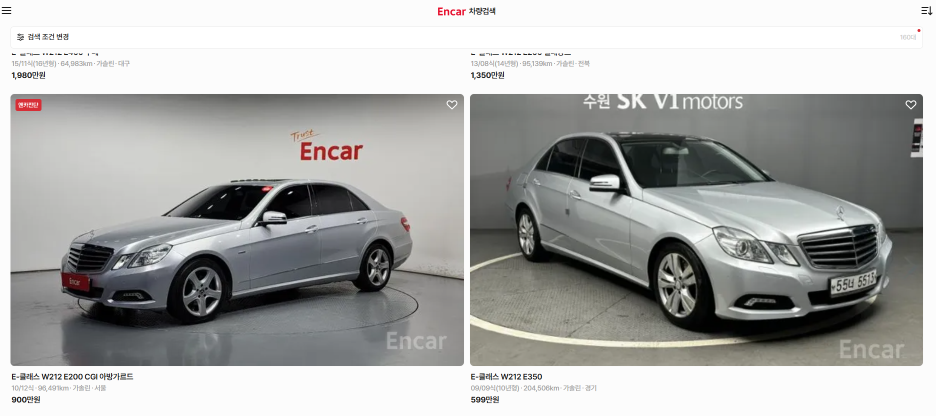 엔카 홈페이지에서 차를 검색할 때 맨 아래에 작게 등록되는 매물들이 있다.
