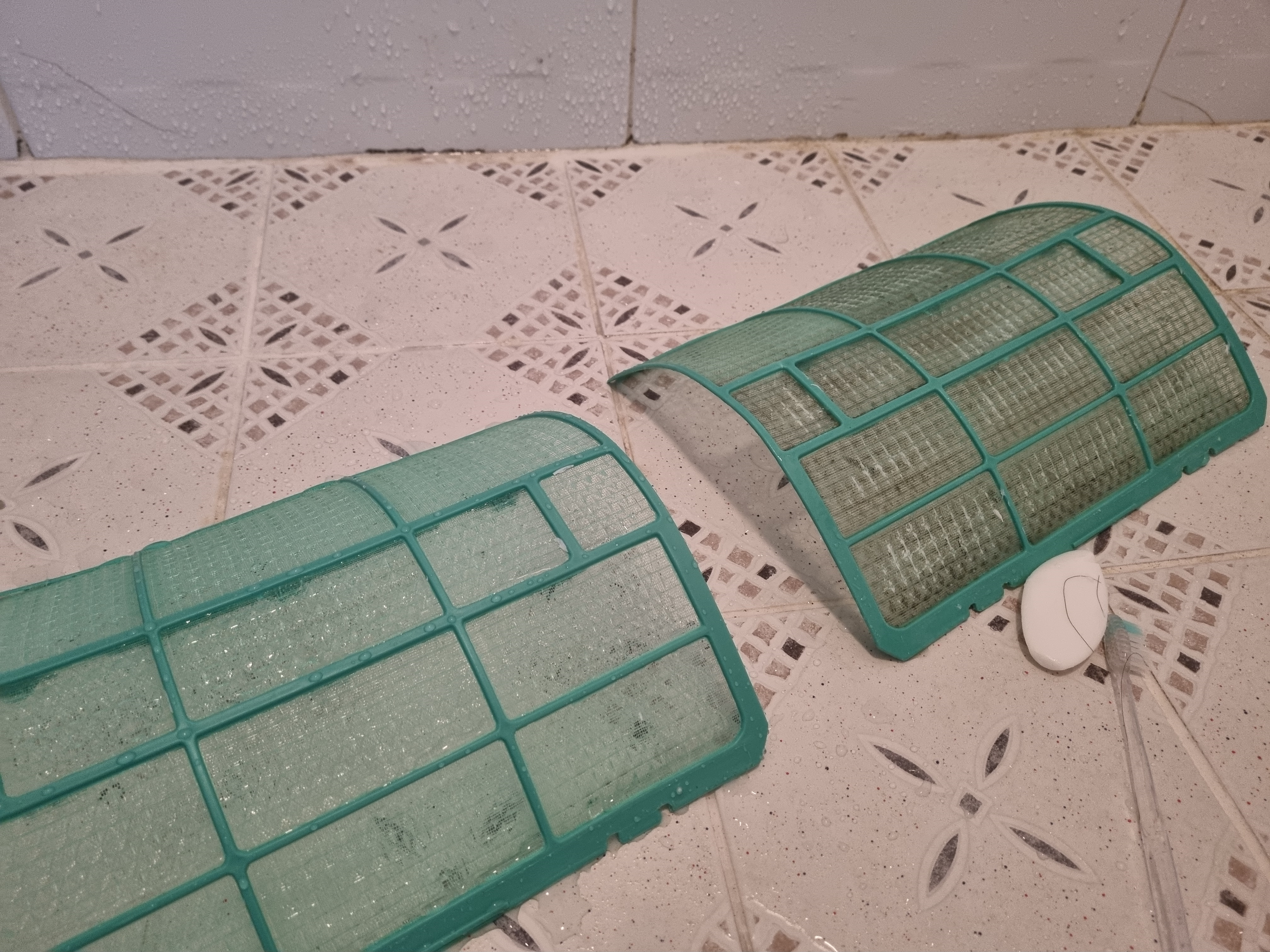 청소하지 않은 것처럼 보이는 오른쪽 필터도 사실 칫솔로 박박 문질러가며 물세척을 끝낸 필터입니다.