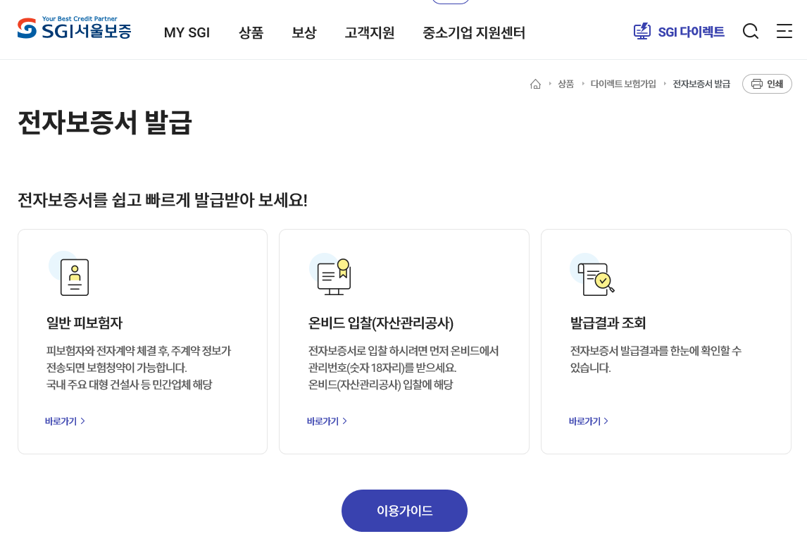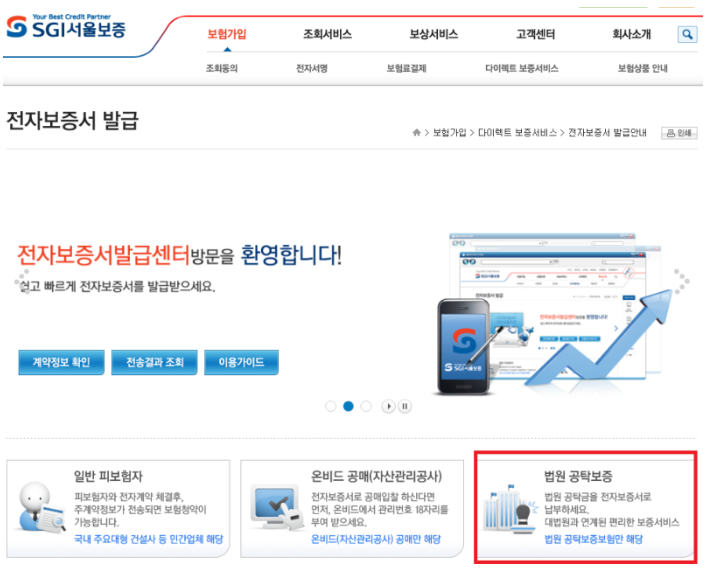 2022년 현재 리뉴얼된 SGI서울보증공사 홈페이지엔 법원 공탁보증을 할수있는 방안이 없다. 조회메뉴만 있을뿐.
