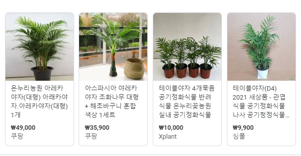특히 테이블야자는 table palm이라고 검색해서는 나오지 않는다. 테이블야자라고 검색하면 나오는 것은