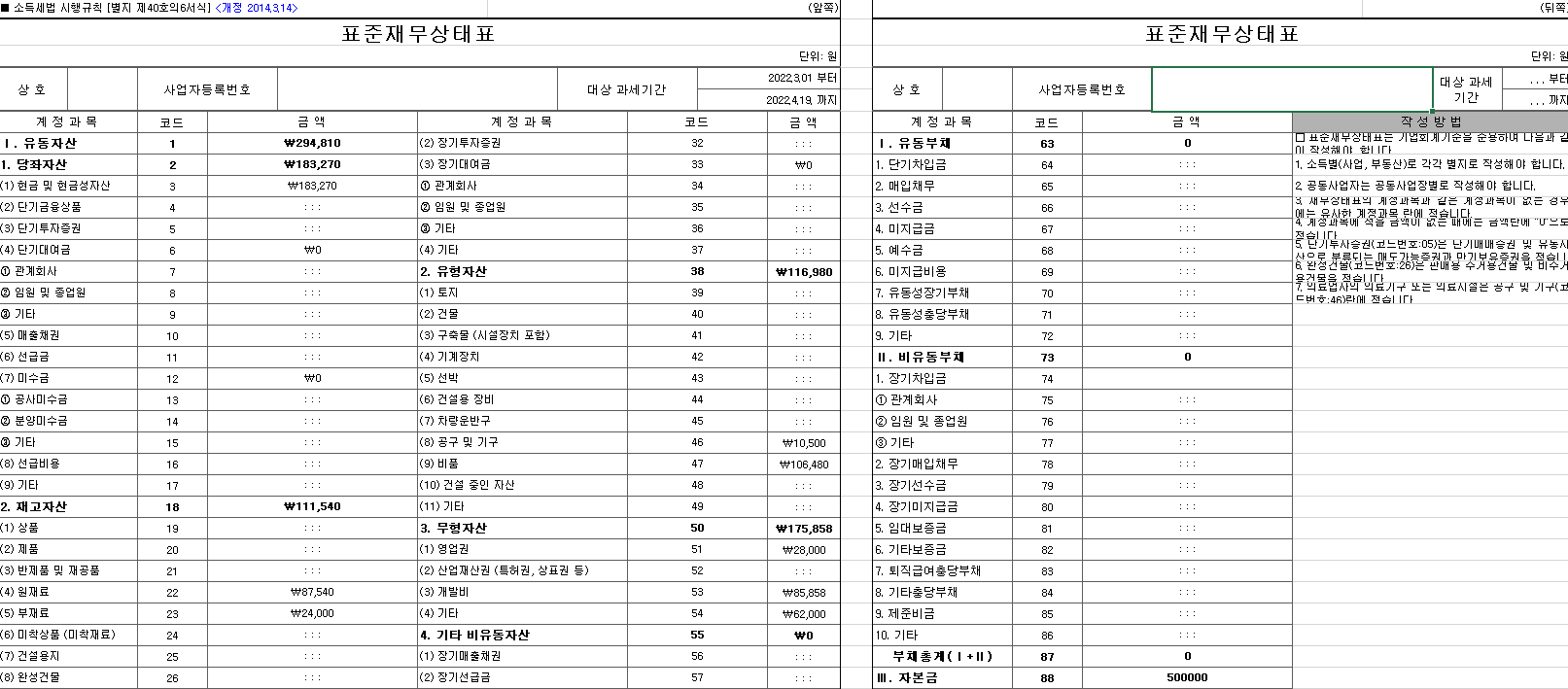 국세청에서 제공하는 재무제표는 SUM함수가 적용되어 있지 않아서, 다시 입력하기가 귀찮다.