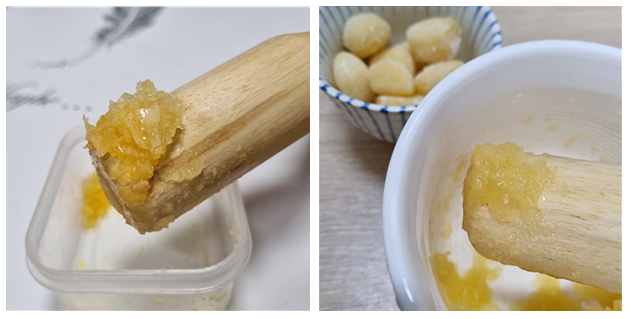 몇번 빻지 않아도 금방 곱게 다져지는 마늘의 모습을 볼 수 있다.