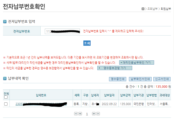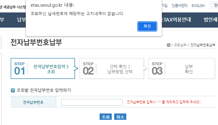 비회원조회, 회원조회, 납부번호19자리 조회를 아무리 해봐도,