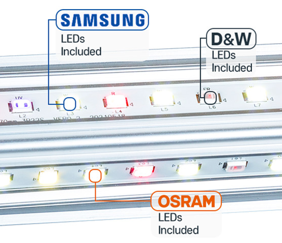 시중에 존재하는 LED바는 거의 전부 삼성에서 제조한 식물전용 LED칩으로 만들어져 있습니다.