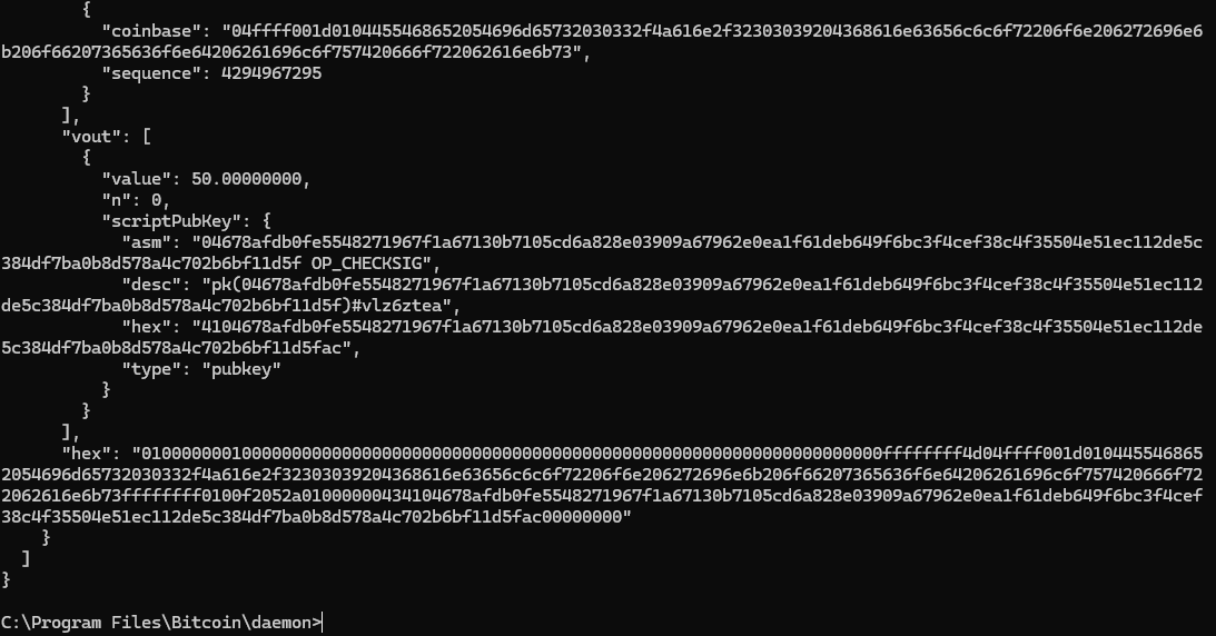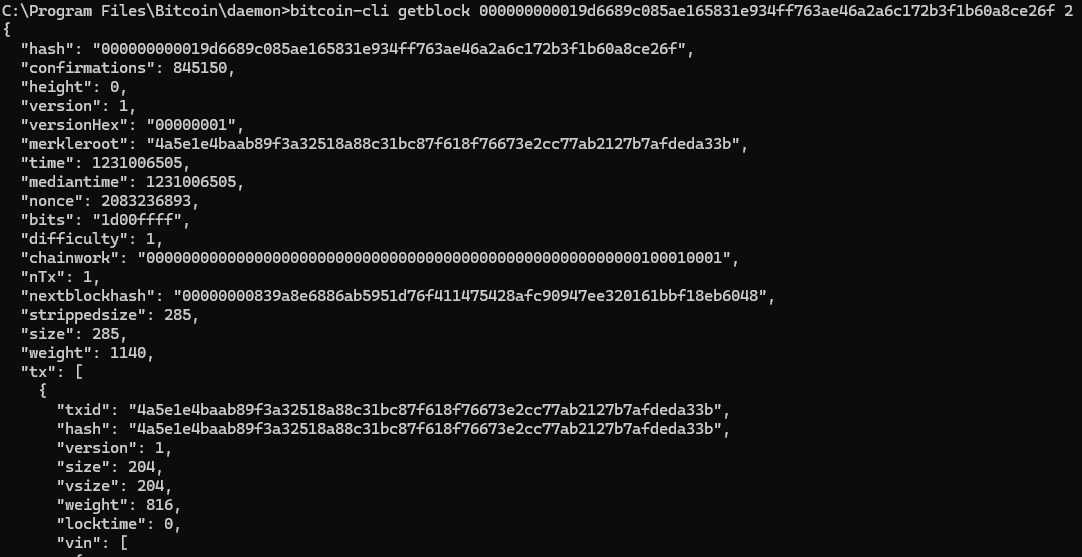 nextblockhash와 함께 prevblockhash도 있으나, Genesis block인 탓에 prev값은 없다.