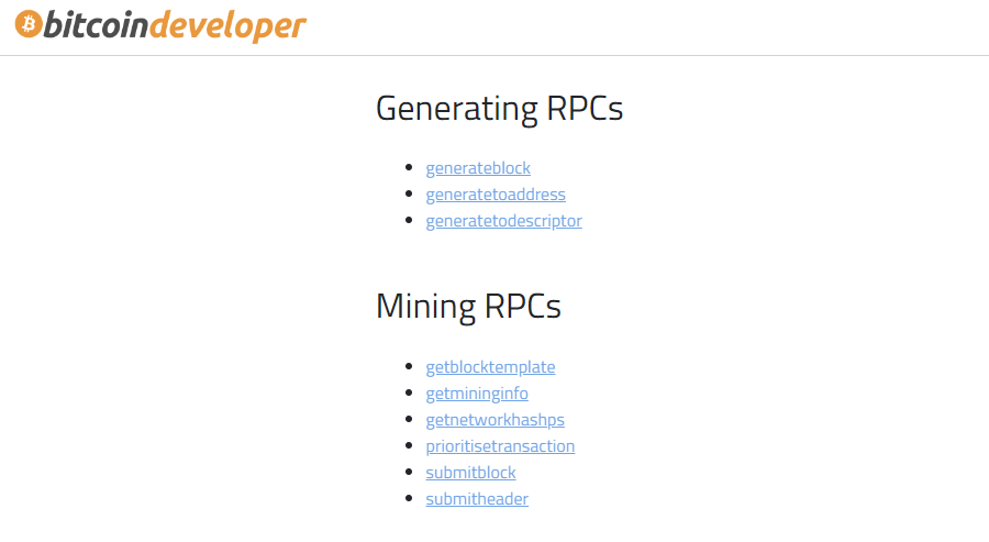 RPC들이 정리된 위 웹사이트에는 채굴과 관련된 RPC들도 물론 다루고 있다.