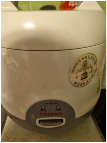 본인이 가진 참으로 초라하기 없는 전기밥솥의 모습이다. 오래되어보이는 품질경영상 수상 스티커가 붙어있다.