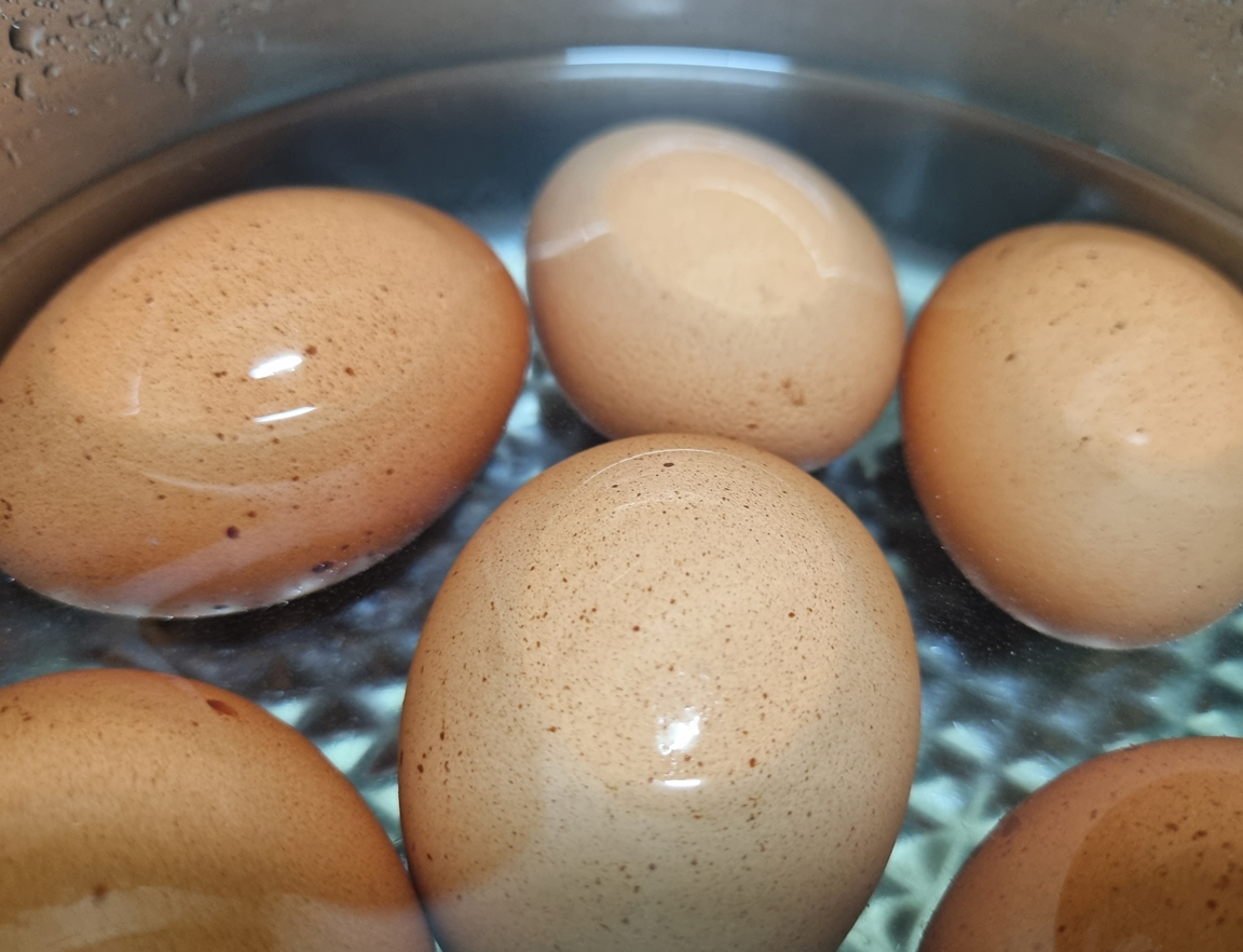 1. 계란의 8/9가 찬물에 잠기도록 냄비에 담아준 후*, 강불로 가열