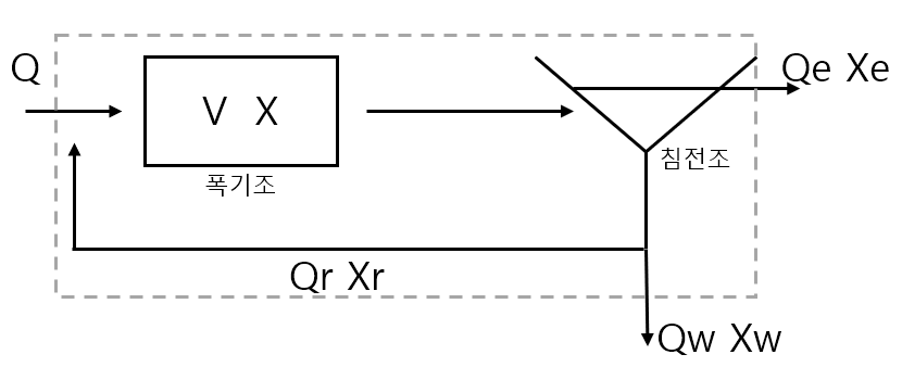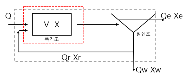 QX (MLSS 양) = Y*BOD*Q*E (미생물의 양)