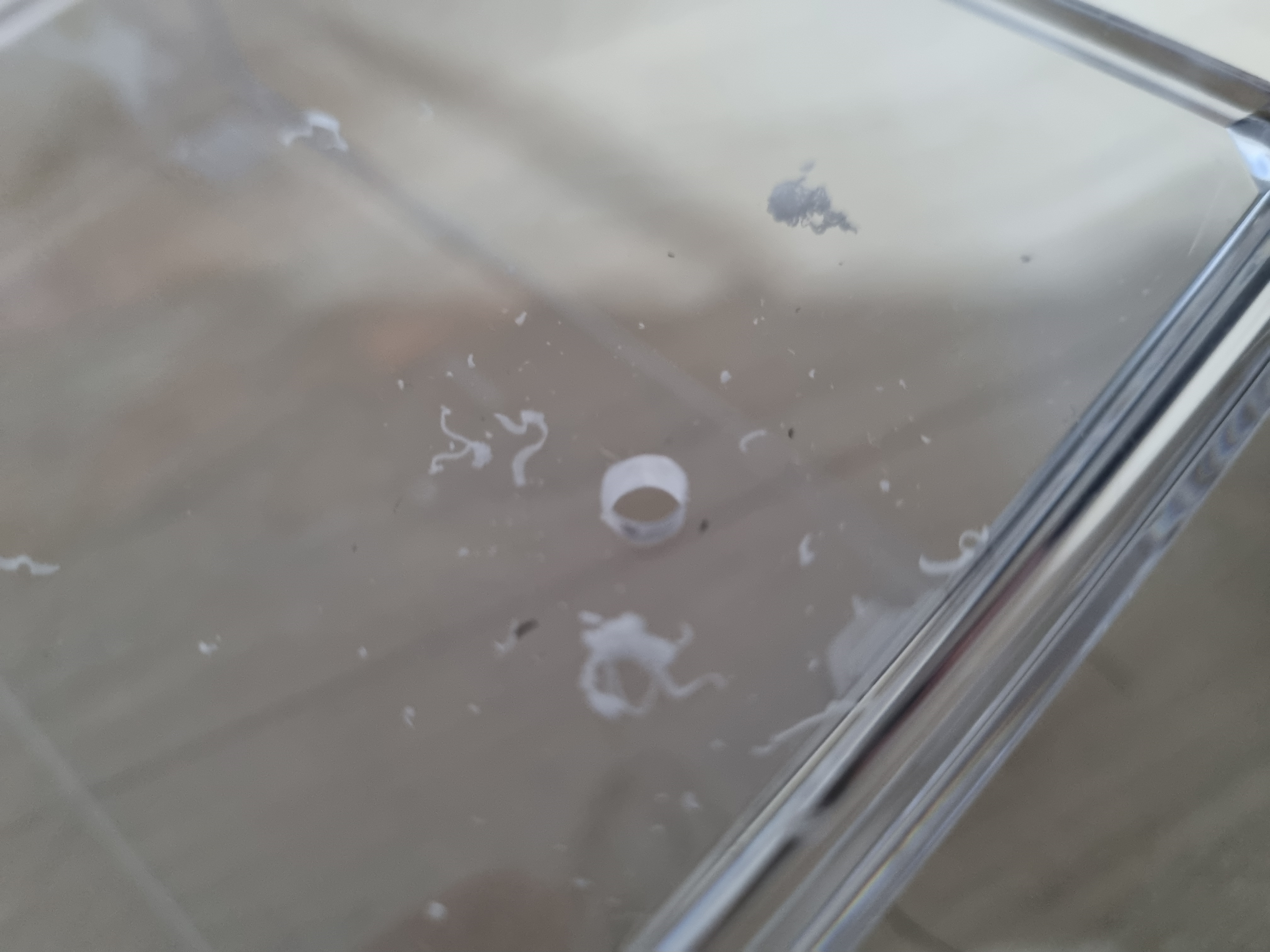 고속으로 회전하는 비트와 플라스틱의 마찰로 인해 뚫는 와중 비트 주변에 녹은 상태로 존재하게 되는 플라스틱을 관찰할 수 있을 것입니다.