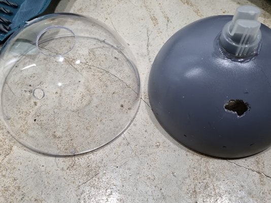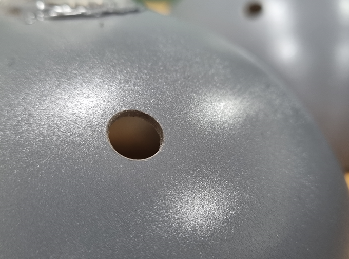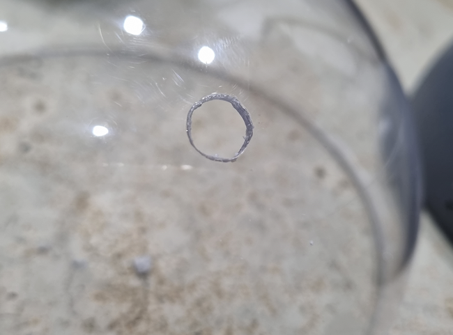 왼쪽 반구의 큰 구멍은 유리홀쏘를 사용하여 뚫습니다.