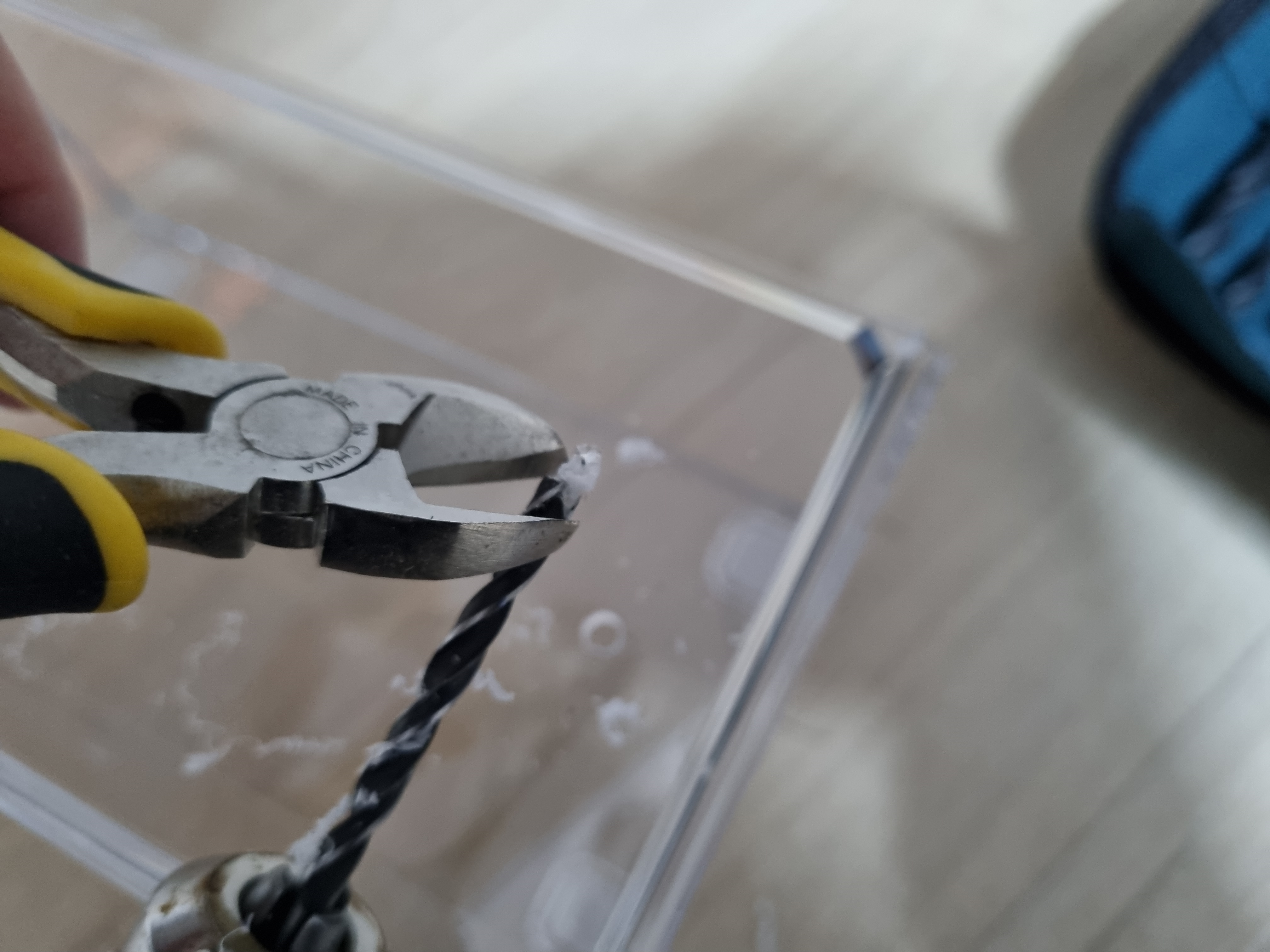 **두께 1mm가량의 투명 PS재질 플라스틱은 홀쏘, 목재용 비트로 뚫을 수 있다.