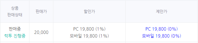 럭투 진행일자가 되면 자동으로 제안가인 1%할인이 적용되고 럭투가 시작되는게 아니다.