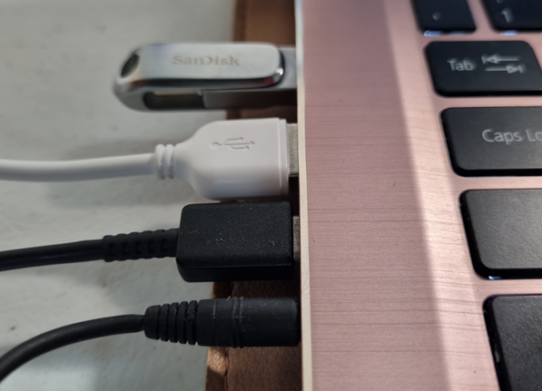 문제의 원인은 필자가 노트북을 통해서 충전중이던 핸드폰과 보조배터리였다.