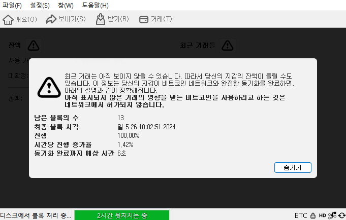위 화면을 보게 되었다면 축하한다!! 비트코인 노드 설치&운영 성공이다!