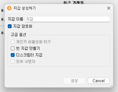 1테라 가까운 데이터를 꼬박 다운로드받아서 검증하는 과정이 끝났다면 지갑만 생성하면 끝이다.